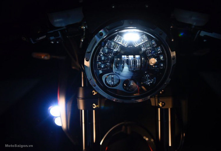 Phía trước xe là một kiệt tác về phong cách và hiệu suất. Đèn pha LED thích ứng có thể bật/tắt tùy thuộc vào tốc độ và độ nghiêng của xe, các chùm sáng mạnh có thể chiếu sáng nhiều cung đường khác nhau.