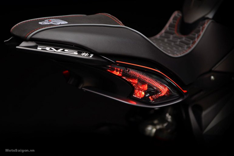 Cụm đèn LED phía sau của Mv Agusta RVS cũng đảm bảo tối đa khả năng hiển thị của xe. Bình xăng và yên ngồi được thiết kế một cách khéo léo. Với cách thiết kế lại, yên ngồi đã được tăng cường sự thoải mái và công thái học với một mô hình tổ ong độc đáo bắt mắt. Bình xăng được dát titan tăng thêm độ sang chảnh. Ống xả xe cũng được thiết kế hoàn toàn bằng titan với sự giúp sức của dự án SC-Project.
