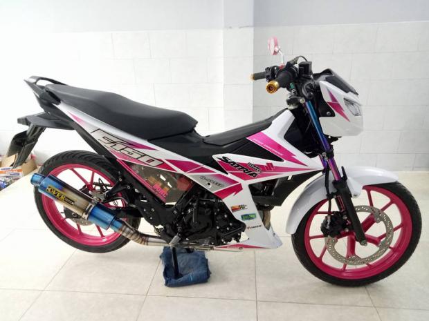 Satria F150 độ đầy ấn tượng với dàn áo hồng cánh sen đầy nam tính