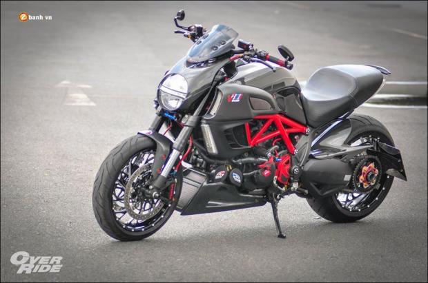 Màu đen tàng hình giúp Diavel trở nên mạnh mẽ và kết hợp với phong cách chồm lỡ khiến xe vô cùng có giá trị, hầm hố trên xa lộ cùng chủ xe