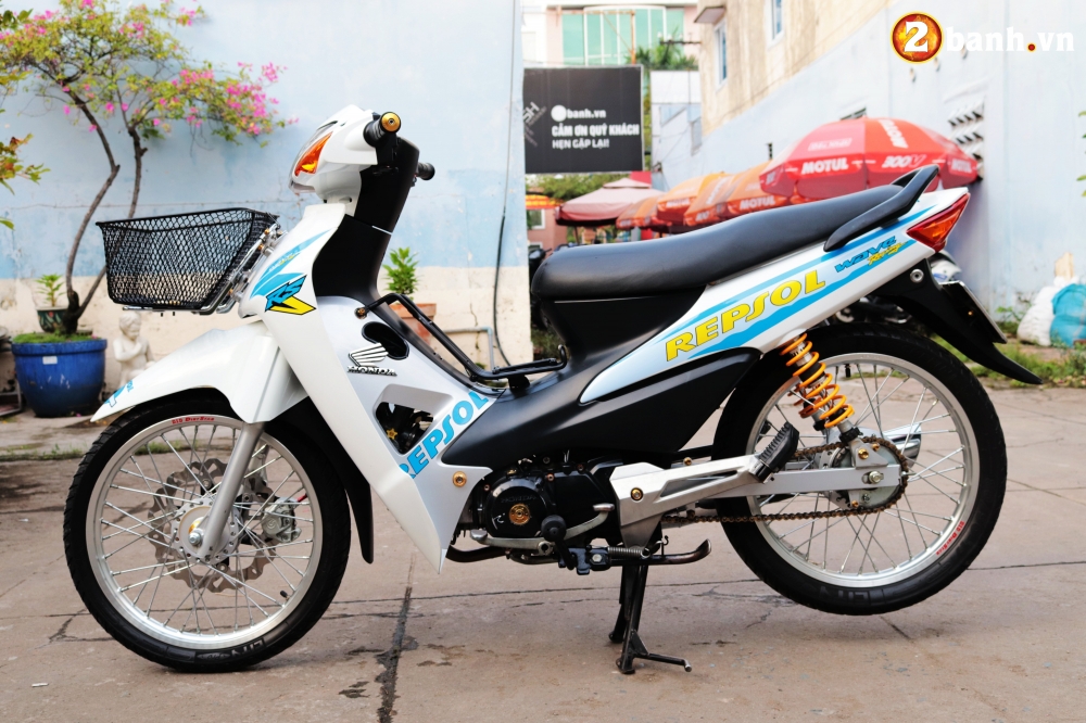 Chiếc Wave độ dưới đây đã có sự biến thân nhẹ nhàng đầy ấn tượng với bộ cánh mang phong cách Repsol đậm chất thể thao kết hợp với các món đồ chơi kiểng nhẹ nhàng.