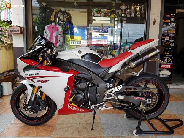 Chiếc R1 đời 2009 này sở hữu tông màu trắng đỏ và được trang bị một số đồ chơi làm tôn thêm vẻ đẹp vốn có của nó.
