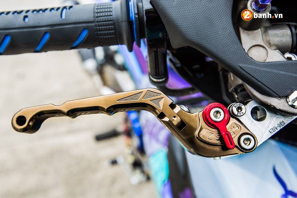 Dàn chân đầy cứng cáp với hệ thống Upside down Ohlins , Full Option PKL với bộ Combo mâm , đĩa & heo được thừa hưởng từ đàn anh Yamaha R6 , có thể thấy mâm đầy nổi bật với sơn Air Brush tương tự như bộ cánh .