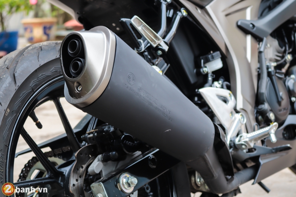 Phần ống xả hiệu quả cao bao gồm 1 ống xả lỗ thoát đôi , 1 bộ xử lý khí thải giúp GSX R150 đạt chuẩn khí thải Euro 3, góp phần bảo vệ môi trường .