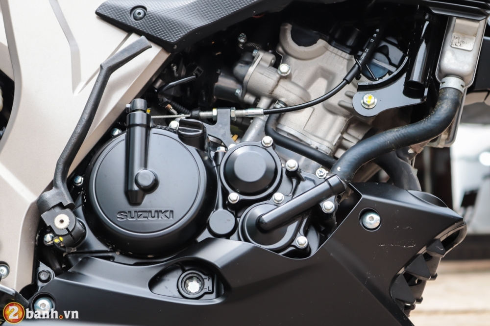 Phần đầu xe với cụm đèn pha LED 2 tầng kích thước vừa phải nhưng khá hầm hố nhờ các đường cắt sắc bén được thừa hưởng từ các đàn anh Sportbike cỡ lớn của gia đình GSX , 2 bên là cặp đèn led định vị , thiết kế này hoàn toàn khác biệt với phần còn lại tạo cho nó 1 cá tính rất riêng. Nhìn ở bên hông bạn sẽ thấy nó khá dữ dằn .