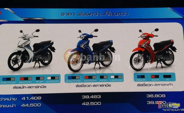 Phiên bản bánh mâm cao cấp: màu Xanh/ Đen/ bạc, Đỏ/ Đen/ Bạc, Đen/ Bạc, Trắng/Đen/ Bạc với giá bán 44.500 Bạt tương đương 30,4 triệu đồng.