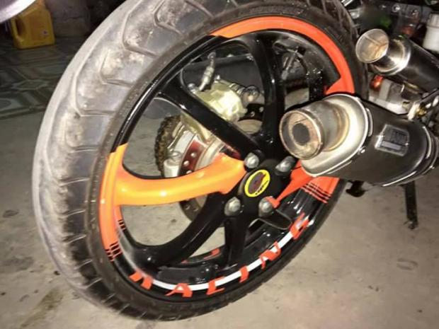 Dàn chân khá cơ bắp với vỏ phuộc Trusty cùng dàn mâm trước của mẫu Honda NSR.