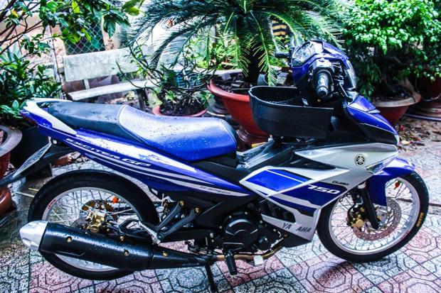 Điểm yếu của Exciter 150 là không có khoảng trống để đồ, nên chủ xe đã trang bị thêm rổ Appi ở giữa thân xe.