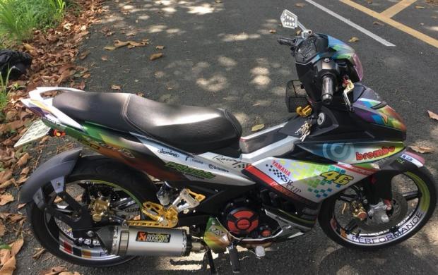 Khoác cho mình bộ cánh tem đấu đậm chất thể thao & nổi bật với nhiều sắc màu rực rỡ , có thể thấy số 46 để ca ngợi thần tượng Rossi của đội đua moto GP . Xe được trang bị vài món đồ chơi kiểng sắc vàng như : mang cá CNC , gác chân Biker , cacte Biker ...