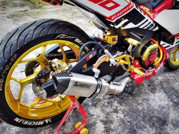 Exciter 150 là dòng xe được độ nhất trong những năm trở lại đây , với dáng vóc hầm hố cùng phân khúc 150cc mạnh mẽ đã để lại ấn tượng sâu sắc cho cộng đồng chơi xe trong & ngoài nước . Theo phong cách của mỗi người mà nhiều bản độ độc lạ dần được ra đời , chiếc Exciter 150 độ kiểng dưới đây cũng tương tự như vậy .
