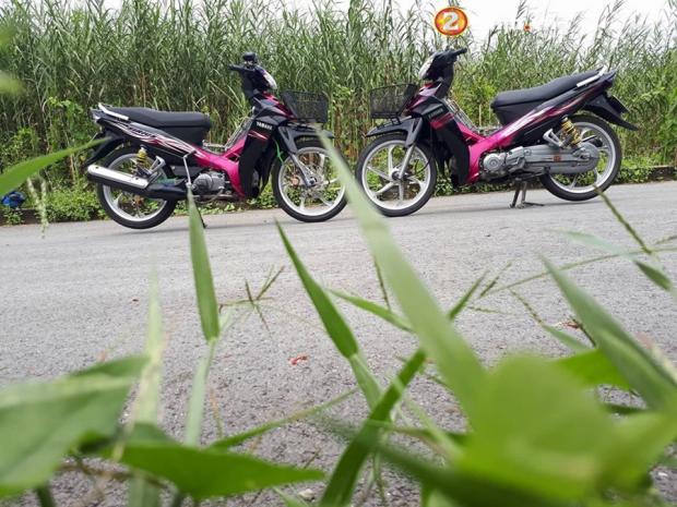 Chả 2 xe độ điều như nhau cùng rổ trước + mặt nạ 3 lỗ, chóa đèn thái, led L4 trợ sáng, bao tay + gù Exciter