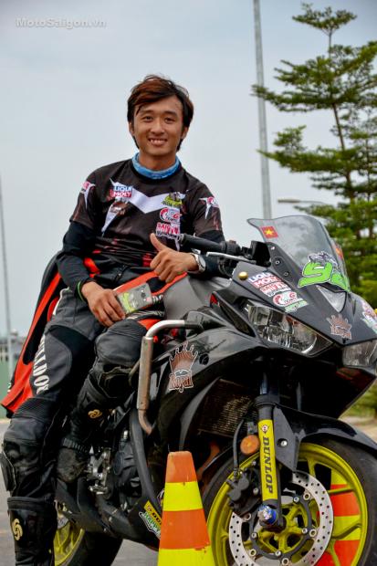 Đi cùng Thư lần này là Kim Sơn, từng đoạt nhiều giải cao tại các cuộc thi Kỹ năng lái xe do Yamaha tổ chức và các cuộc thi Moto Gymkhana.