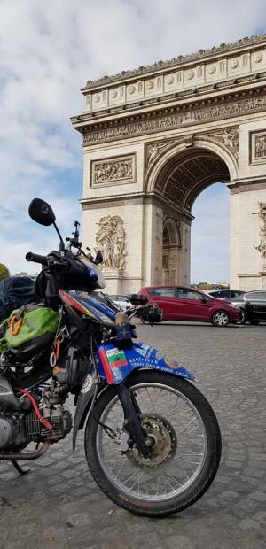 Chàng trai ở Gò Công đã lập nên kì tích mà trước giờ chưa 1 ai có thể thực hiện được ở Việt Nam khi đi phượt xuyên thế giới bằng chiếc ' Wave chiến ' & đã kết thúc hành trình thứ nhất với đích đến là Paris chỉ trong 150 ngày .